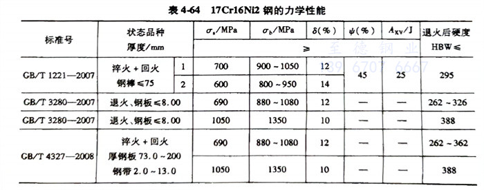 17Cr16Ni2、1.4057、431不銹(xiu)鋼的(de)力學性能(neng)見表(biao)4-64。