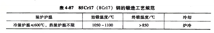 85Cr17(8Cr17)、S44003、SUS440B不銹鋼鍛造工藝規范見表4-87。