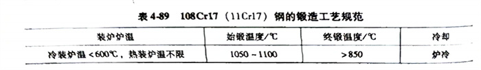 108Cr17(11Cr17)、1.4125、S44004、440C不銹鋼鍛造工藝(yi)規(gui)范(fan)見表4-89。