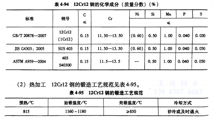 12Cr12(1Cr12)SUS403、S40300不銹鋼的化學成分見表4-94。