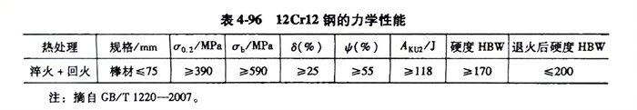12Cr12(1Cr12)SUS403、S40300不銹鋼的力學(xue)性能見表4-96。