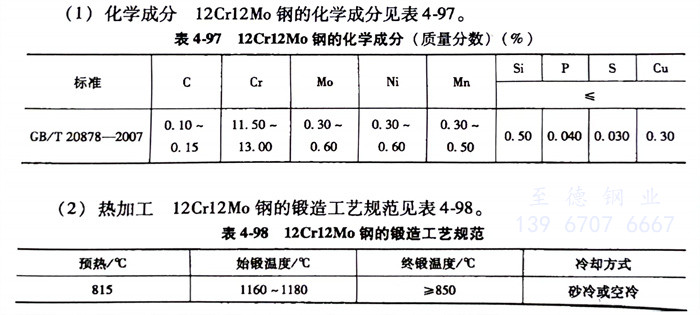 12Cr12Mo(1Cr12Mo)不銹鋼(gang)的(de)鍛造工藝規范見表(biao)4-98。