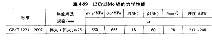 12Cr12Mo(1Cr12Mo)不銹鋼的化學成分見表4-97。