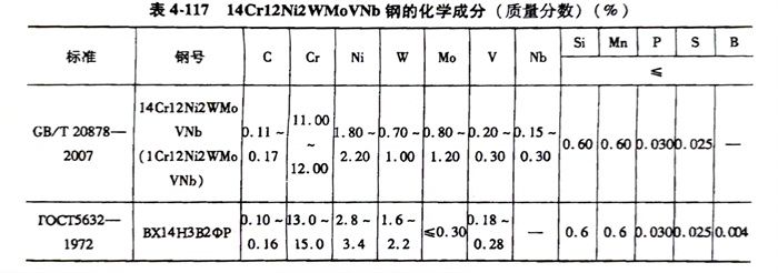 14Cr12Ni2WMoVNb(1Cr12Ni2WMoVNb)不銹鋼(gang)的化學成分見表4-117。
