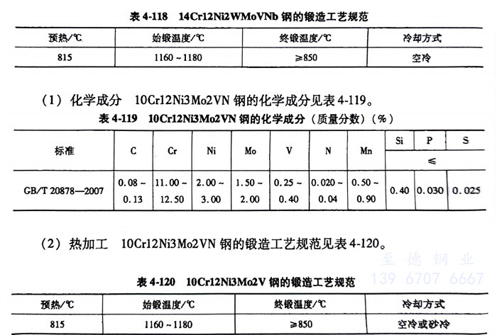 14Cr12Ni2WMoVNb(1Cr12Ni2WMoVNb)不銹鋼的鍛造工藝(yi)規范見表4-118。