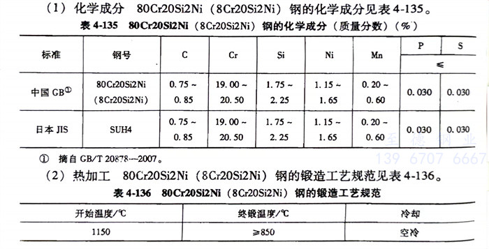 80Cr20Si2Ni(8Cr20Si2Ni)SUH4不(bu)銹(xiu)鋼的(de)化學成分見表4-135。