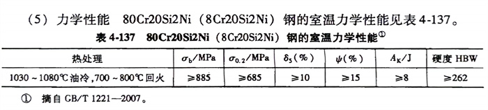 80Cr20Si2Ni(8Cr20Si2Ni)SUH4不(bu)銹鋼的室(shi)溫力學(xue)性能見表4-137。