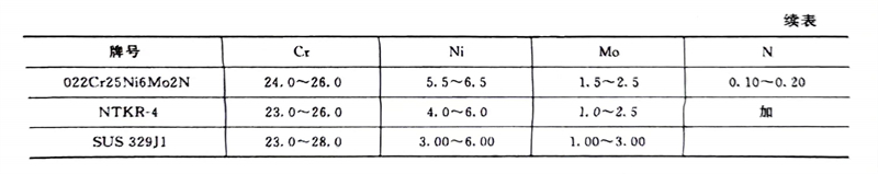 022Cr26Ni5Mo2N、SUS 329J1 雙相不(bu)銹(xiu)鋼(gang)的耐腐(fu)蝕(shi)疲勞性能遠比316L(尿(niao)素(su)(su)級)鋼(gang)好,這(zhe)對(dui)在低應力、低頻率交(jiao)變載荷條件下(xia)工(gong)作(zuo)的尿(niao)素(su)(su)甲銨泵泵體選材有重(zhong)要的參(can)考價值。為了便(bian)于比對(dui),將(jiang)中(zhong)國的022Cr26Ni6Mo2N,日本(ben)的SUS 329J1、NTKR-4等雙相不(bu)銹(xiu)鋼(gang)化(hua)學成(cheng)分,列入(ru)表7-10中(zhong)。