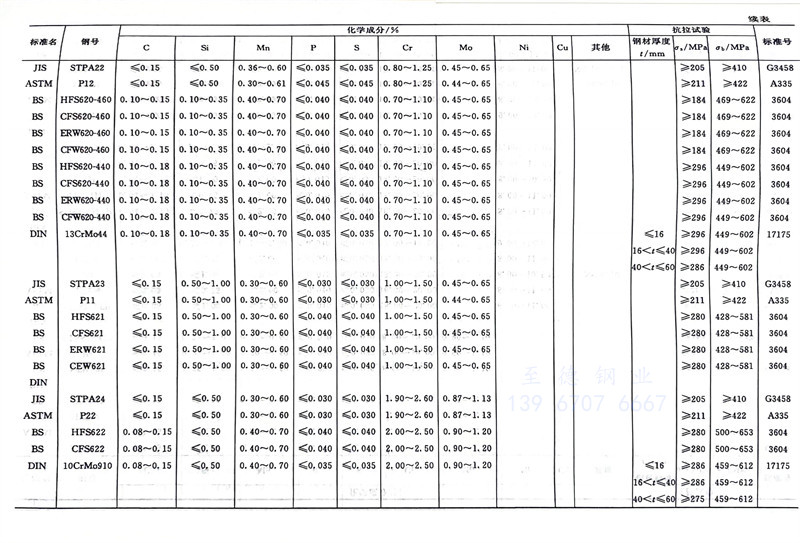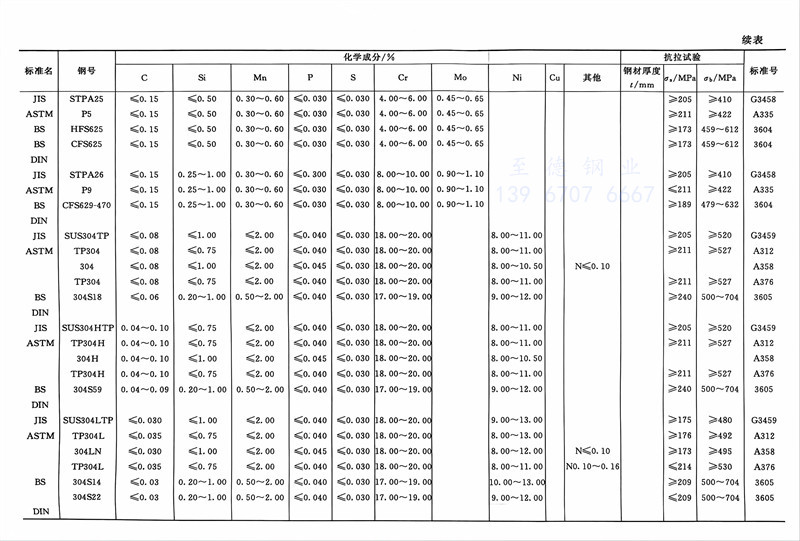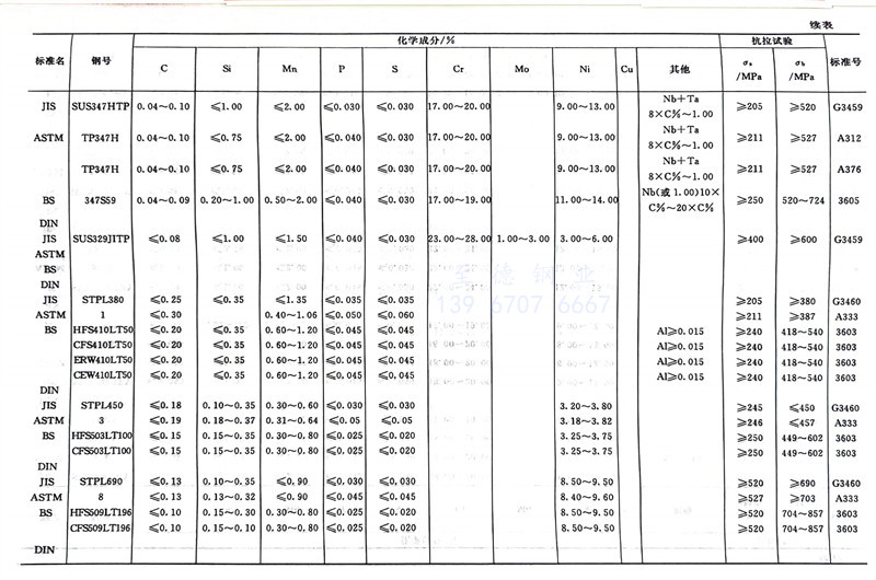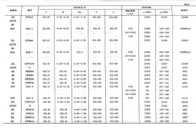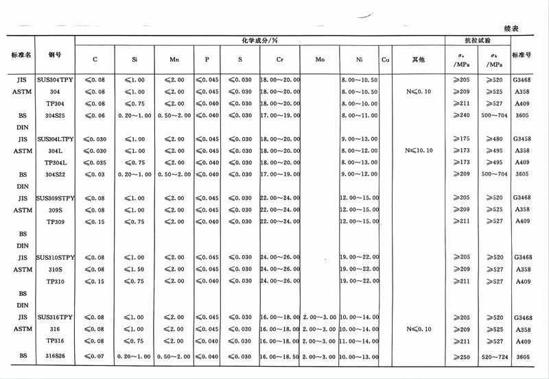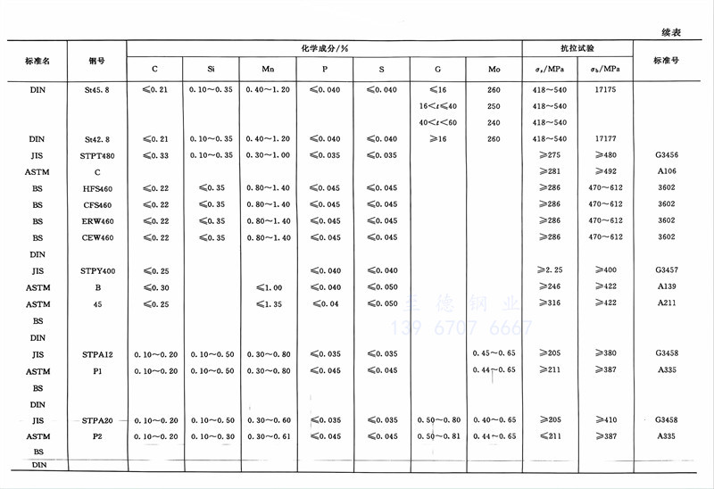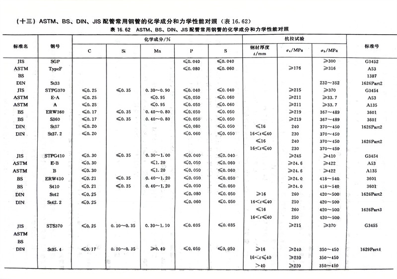 ASTM、BS、DIN、JIS 標準(zhun)配管(guan)常用(yong)鋼管(guan)的(de)化學成分和力學性能對照表(biao)