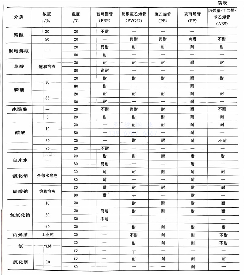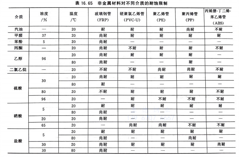 非金屬材料(liao)管(guan)道對不同介(jie)質的耐蝕限制(zhi)