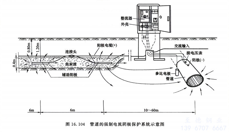 管道的強制電流陰極(ji)保護系統見(jian)圖16.104。