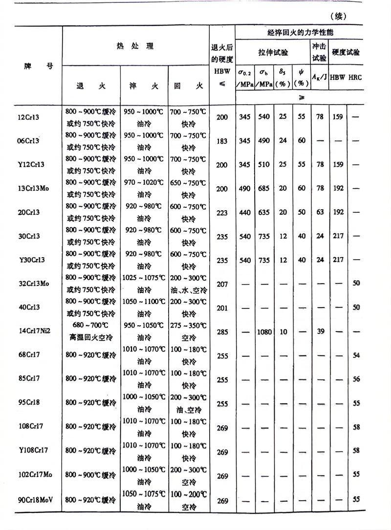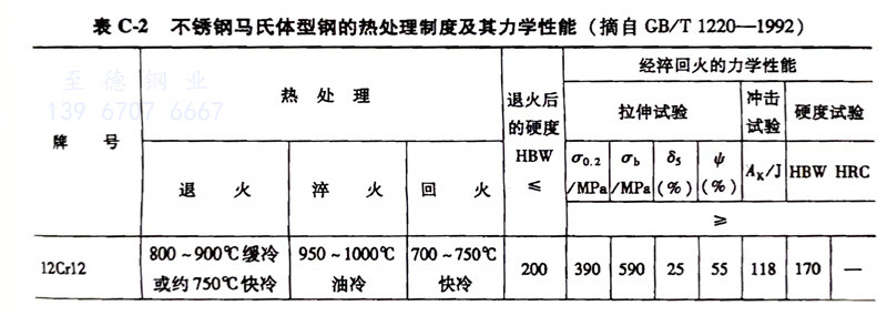 馬氏體不銹鋼的熱處理制度及其力學性能參照表