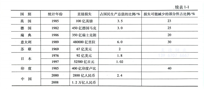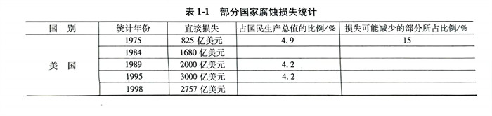 腐(fu)蝕造成(cheng)(cheng)的(de)(de)直接(jie)(jie)經(jing)濟(ji)損(sun)(sun)失可以統(tong)(tong)計(ji)出(chu)具體數字。據發達國(guo)(guo)家統(tong)(tong)計(ji),每(mei)年(nian)由腐(fu)蝕造成(cheng)(cheng)的(de)(de)直接(jie)(jie)經(jing)濟(ji)損(sun)(sun)失約(yue)占國(guo)(guo)民(min)經(jing)濟(ji)總(zong)(zong)產值(zhi)的(de)(de)1%~6%,超過了每(mei)年(nian)因(yin)水災、火災、風災和(he)(he)地震造成(cheng)(cheng)的(de)(de)損(sun)(sun)失總(zong)(zong)和(he)(he)(100多億美元(yuan))。據權威部門統(tong)(tong)計(ji),我國(guo)(guo)每(mei)年(nian)因(yin)腐(fu)蝕造成(cheng)(cheng)的(de)(de)損(sun)(sun)失高達5000多億元(yuan),相當(dang)于(yu)國(guo)(guo)民(min)生(sheng)(sheng)產總(zong)(zong)值(zhi)的(de)(de)4%,僅在石(shi)油和(he)(he)化學工業造成(cheng)(cheng)的(de)(de)損(sun)(sun)失就(jiu)達800多億元(yuan)。據統(tong)(tong)計(ji),全世界每(mei)年(nian)由于(yu)腐(fu)蝕而報廢的(de)(de)金屬設備和(he)(he)材料(liao)相當(dang)于(yu)金屬年(nian)產量(liang)的(de)(de)10%~40%,其中2/3 可再生(sheng)(sheng),而1/3的(de)(de)金屬材料(liao)被腐(fu)蝕后(hou)無法回收。從表1-1可以看出(chu)發展中國(guo)(guo)家與發達國(guo)(guo)家由腐(fu)蝕造成(cheng)(cheng)的(de)(de)損(sun)(sun)失都相當(dang)大。
